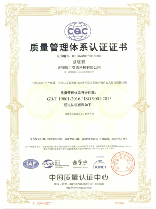近日,中国质量认证中心根据体系认证的相关要求,对智汇交通进行了