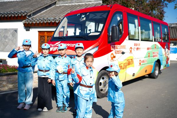 客运集团蒲市专列从无锡汽车客运站始发,最早6:30,最晚17:05;蒲市村返锡最早6:35,最晚18:10。市民可通过无锡汽车客运站售票窗口或“巴士管家”app 及小程序轻松购票,票价仅18元/人,共设置11个班次,满足旅客不同时间段出行的各项需求,为市民旅客实现周边游、乡村游、周末游提供了极大的出行便利。车身精心设计,以蒲市村经典IP形象——蒲市小红娃为主体,通过生动可爱的视觉元素和鲜明的色彩,打造出一辆富有亲和力和辨识度的蒲市专列,成为美丽乡村一道靓丽的风景线。车身上还展示了新四军六师师部驻地旧址、风铃长廊、粉黛花海、最美村咖、梦享飞行乐园等特色景点,化身为一本移动的蒲市“旅游攻略”。