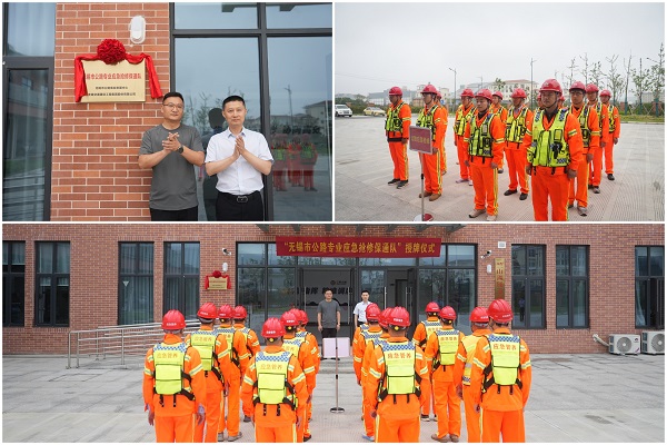 近日,由无锡交建集团与无锡市公路事业发展中心联合组建的“无锡市公路专业应急抢修保通队”(以下简称“保通队”)在竺山湖隧道运营养护项目揭牌成立。